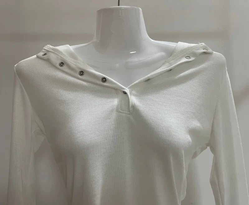 Coquette Aesthetic Hooded T-Shirt Women's Lightweight Long Sleeve Top with Letter Print Y2K Retro White Shirt for Fall 2025