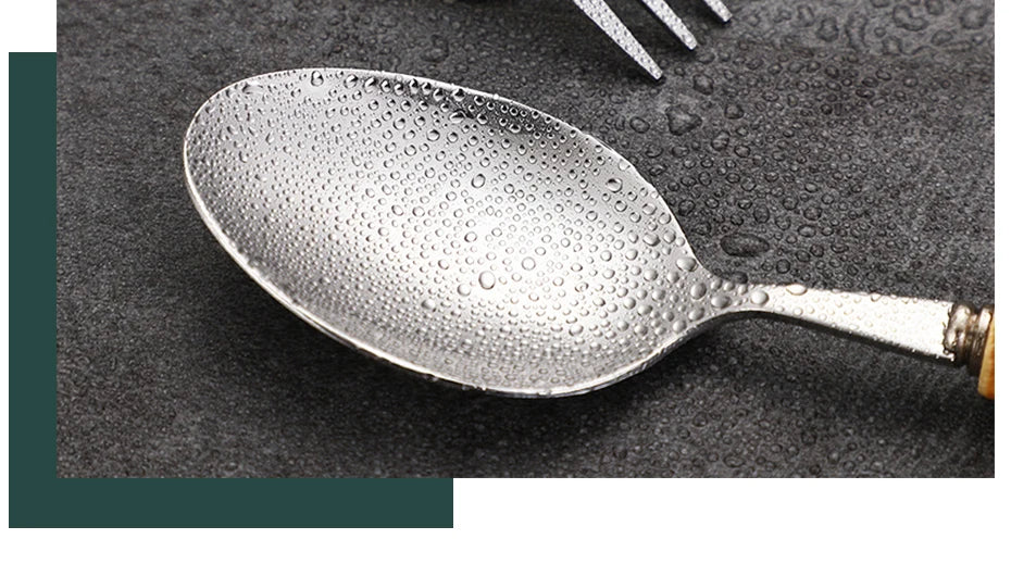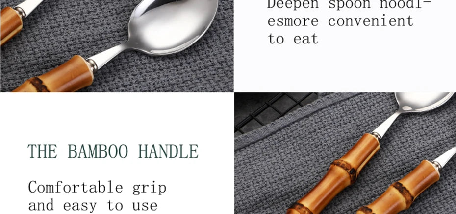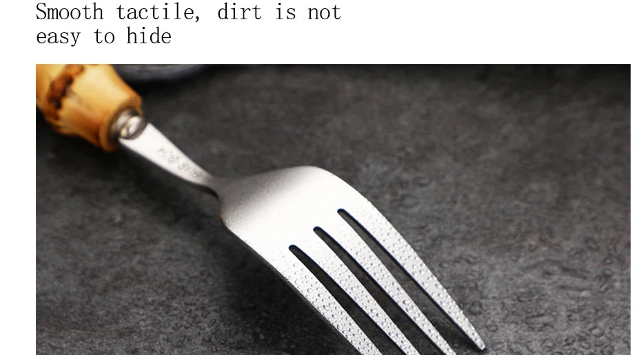 ●【Creative design】 This stainless steel cutlery set is equipped with handmade bamboo handles,