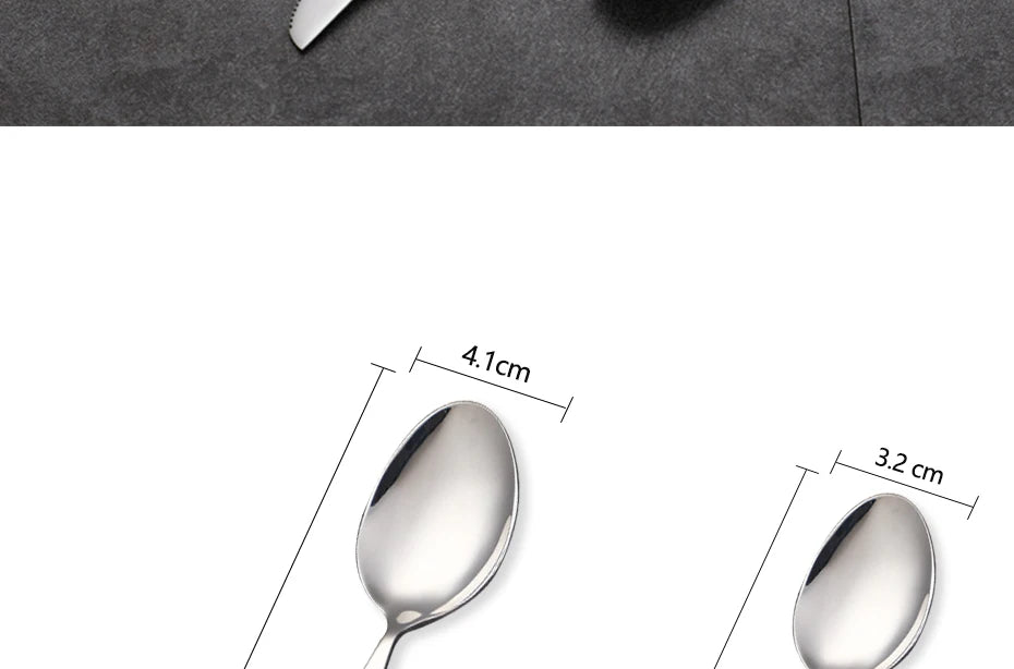 ●【Sturdy stainless steel products】 This set of tableware is made of high-quality materials,sturdy structure, durable. Four-piece cutlery set including table knife,dinner knife, dinner fork, dinner spoon, tea spoon