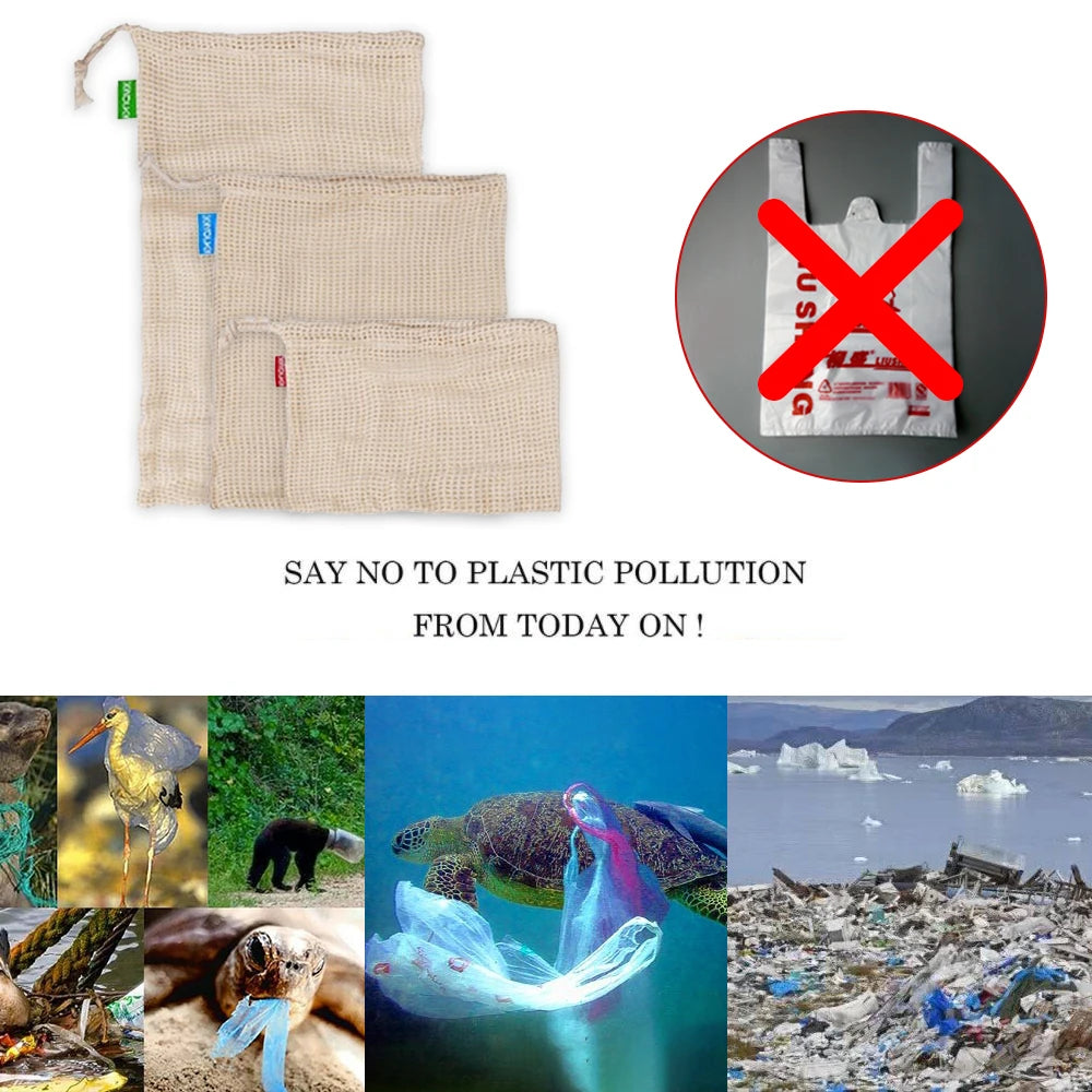 Reusable Cotton Mesh Produce Bags for Vegetable Fruit Food Kitchen Washable Grid Storage Bag Eco String bag Kitchen Organizer
