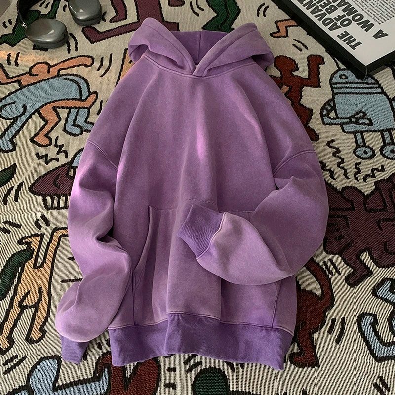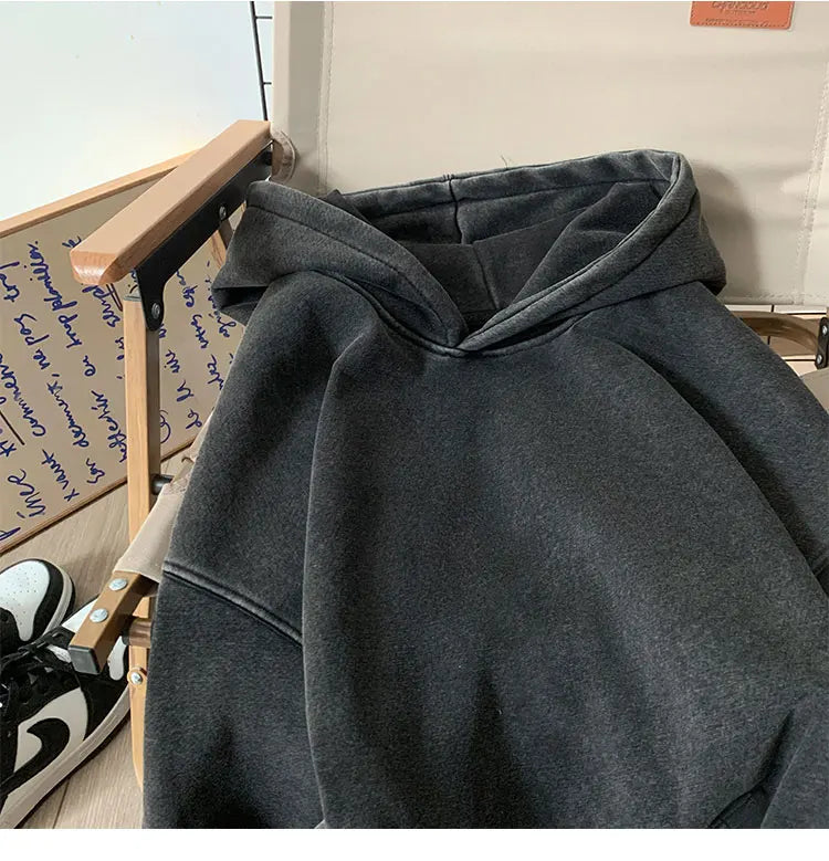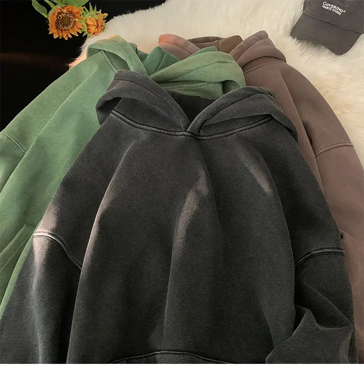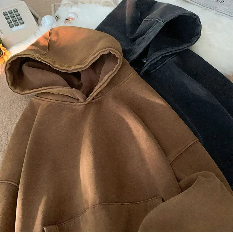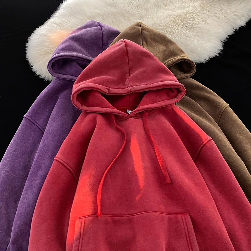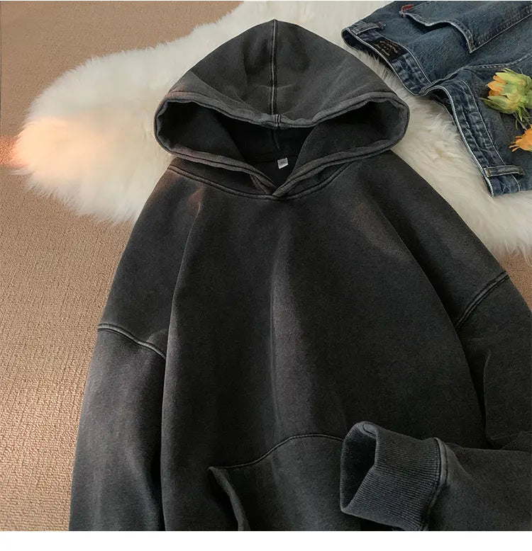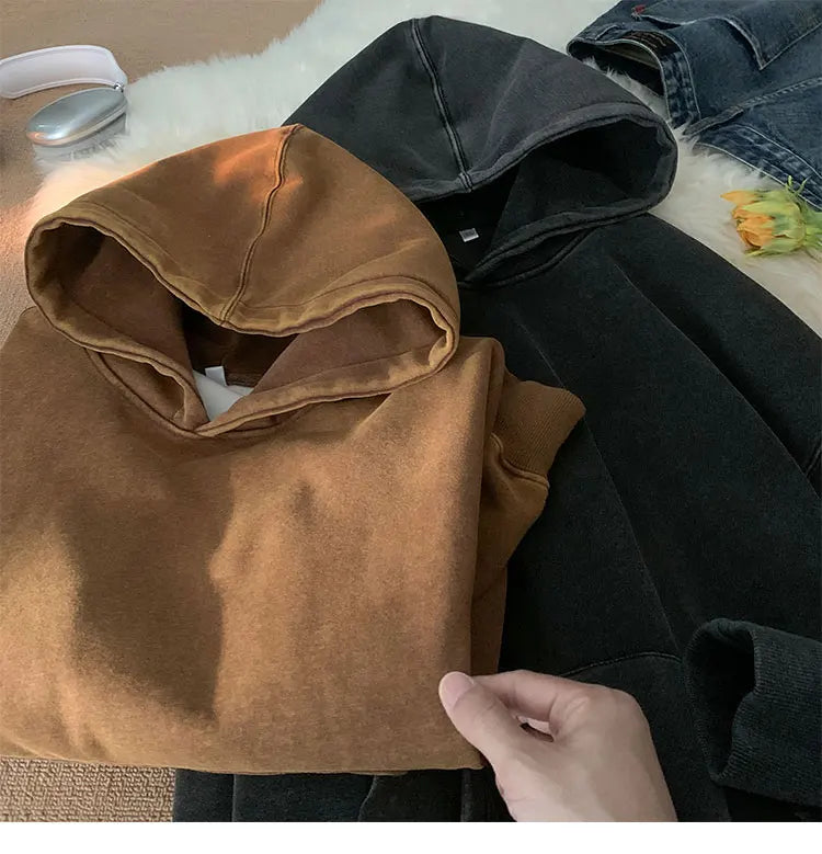 Men’s Vintage Washed Hoodie – Loose Fit Streetwear Pullover for Casual Harajuku Style