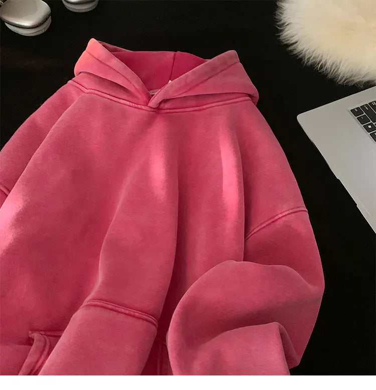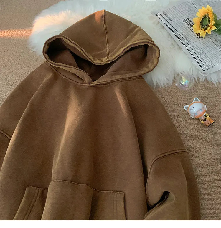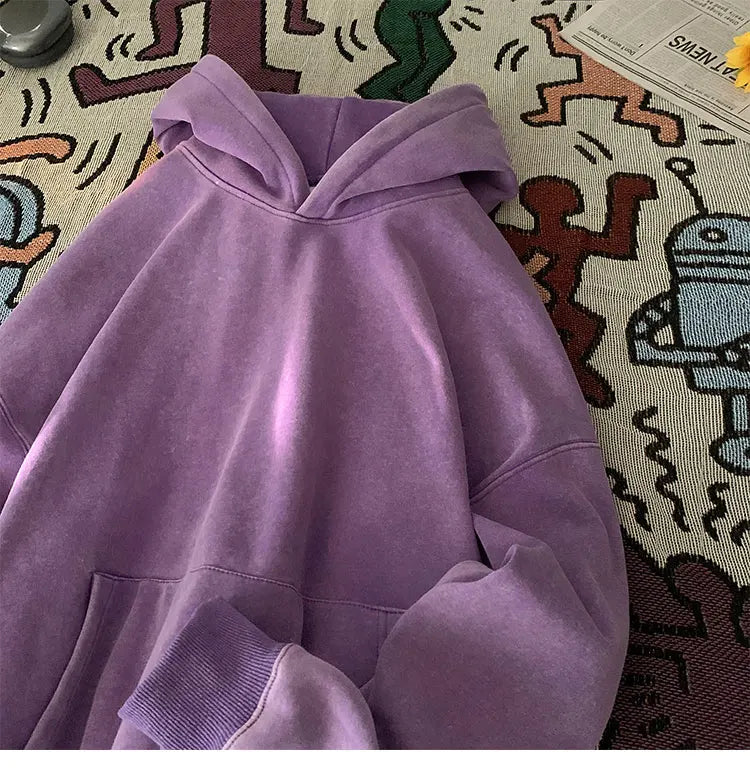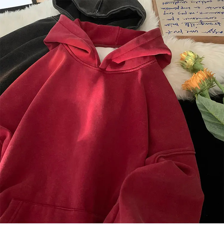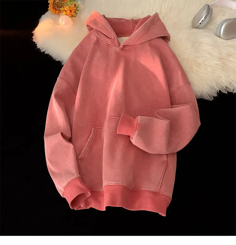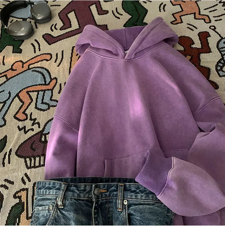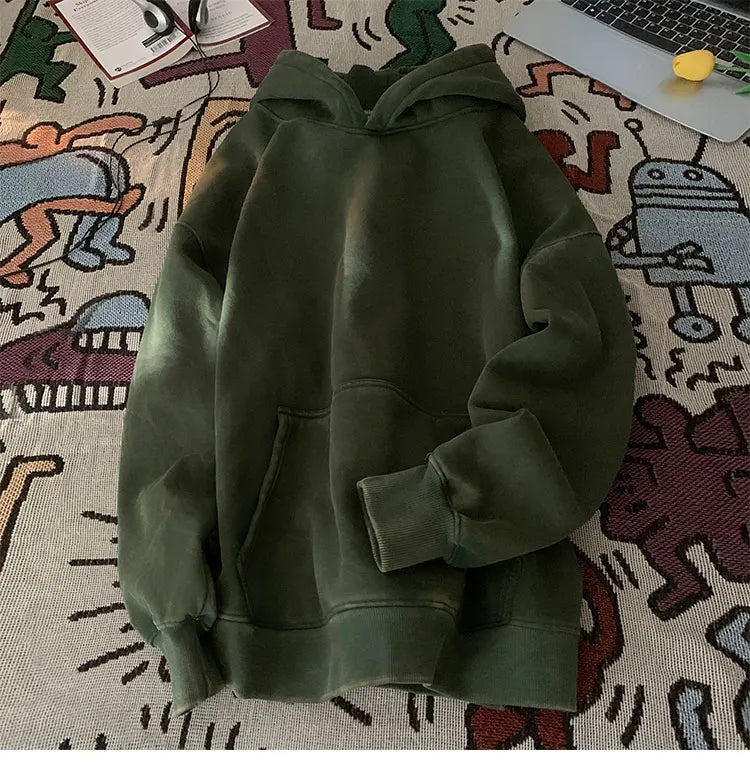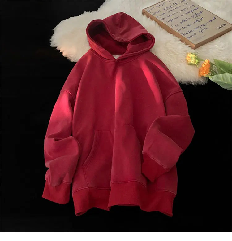 Men’s Vintage Washed Hoodie – Loose Fit Streetwear Pullover for Casual Harajuku Style