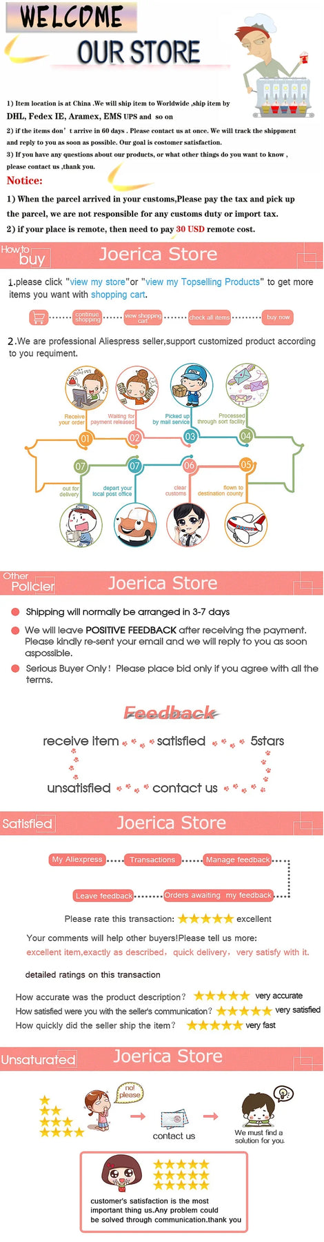 2. When the parcel arrives at your local customs, please pay the tax and take the parcel away. We do not bear any customs duties or import taxes. If the customs fails due to the buyer's reasons and the goods are returned or destroyed, we will not refund any money.