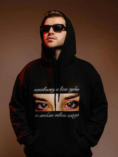 Men’s Oversized Eye Graphic Hoodie – Thick Winter Harajuku Streetwear Pullover Y2K Style