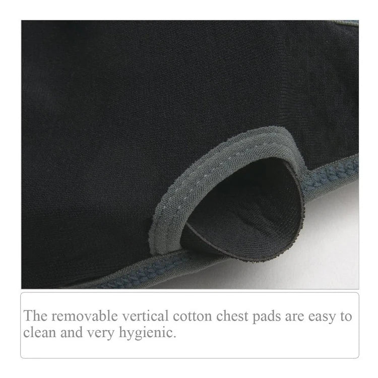 The removable vertical cotton chest pads are easy to clean and very hygienic.