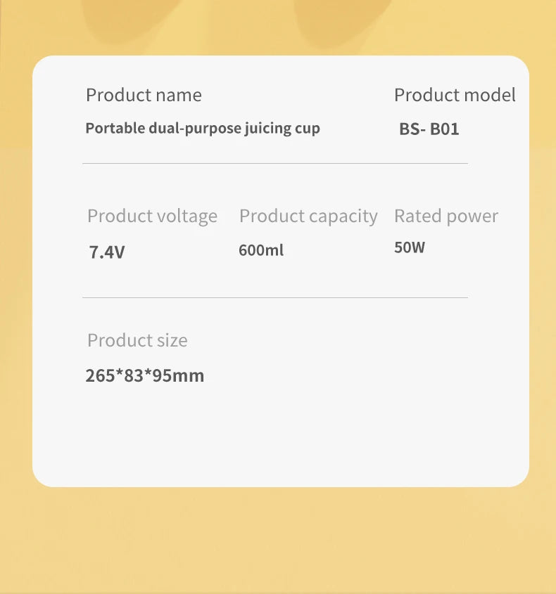 Additional functions: wall-breaking, supplemental nutrition, rechargeable portable