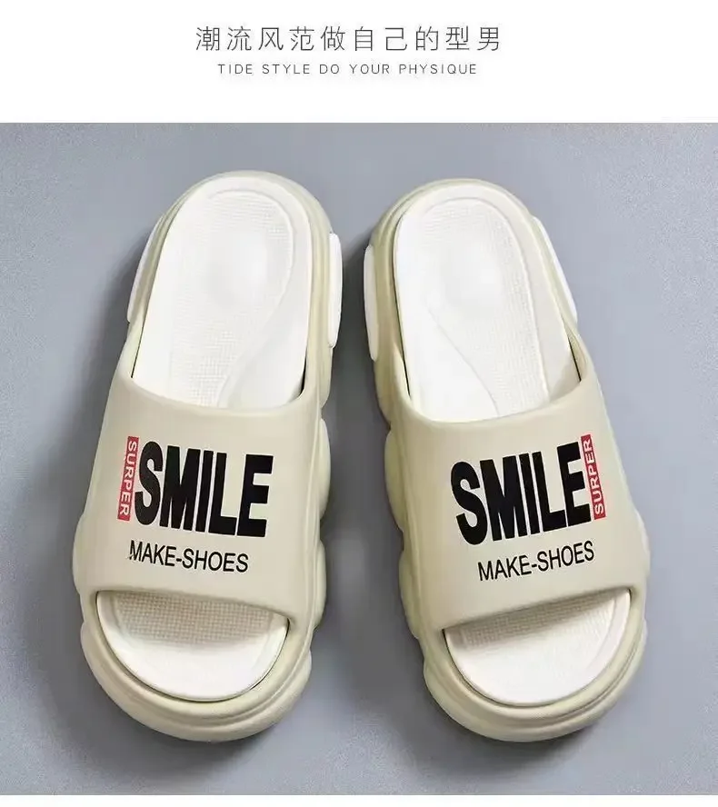 Men's Beach Slides Summer Thick Sole Bathroom Anti Slip Slipper Soft Sandals Simplicity Ultra Light Letter Shoes Men Slippers