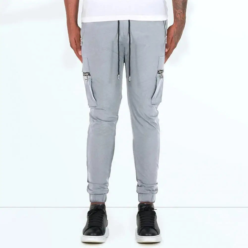 Mens Cargo Pants Zipper Pockets Jogger Running Hip Hop Streetwear Slim Sport Trousers Male Training Workout Fitness Sweatpants