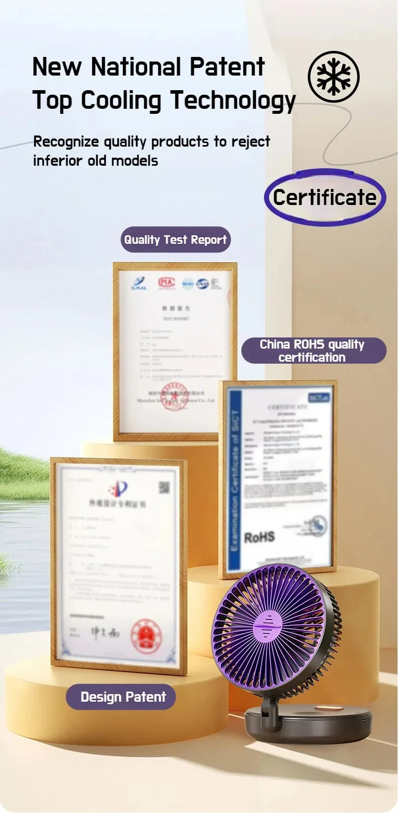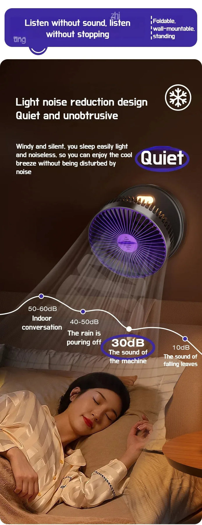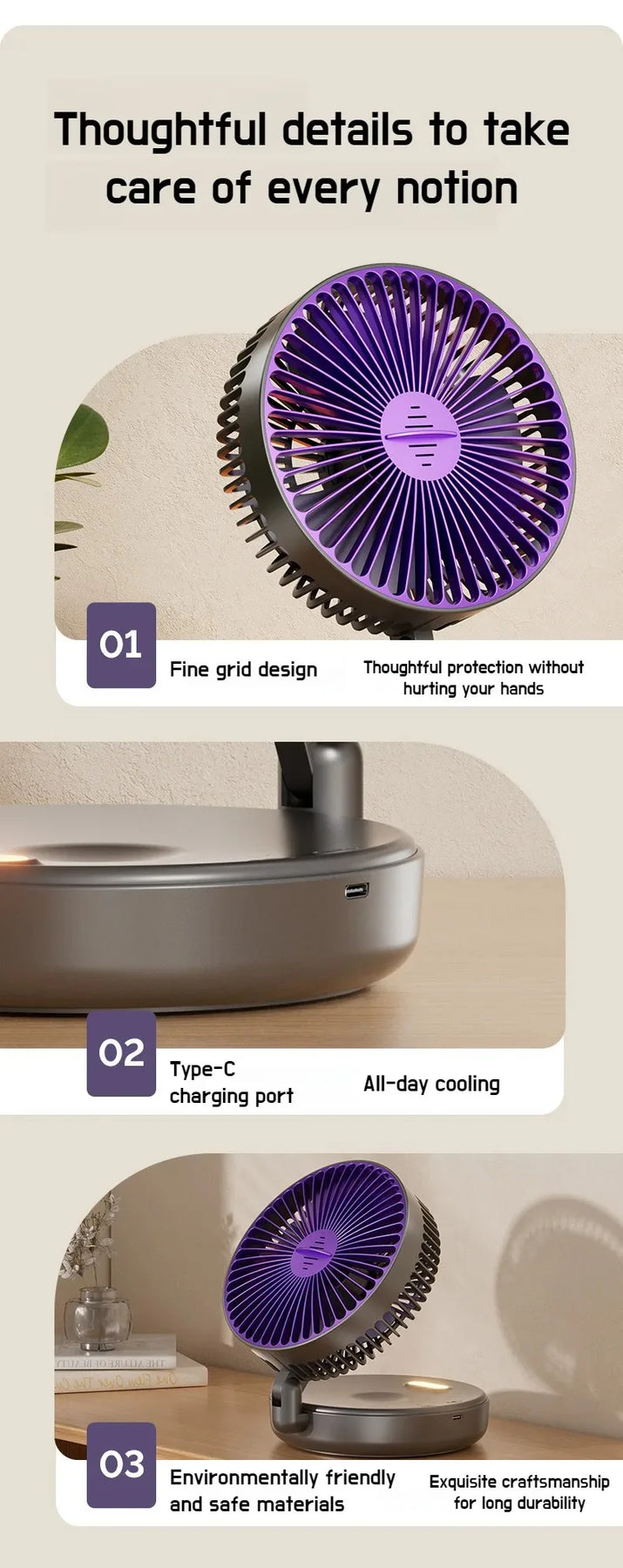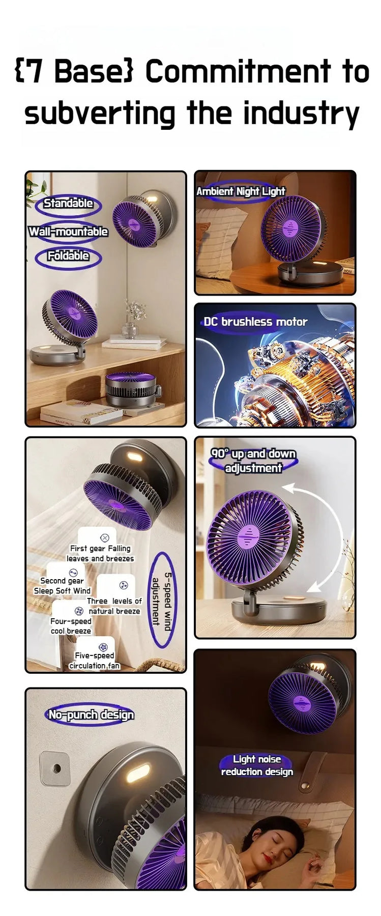 Foldable Desktop Fan Mini Wall-Mounted Fan With Warm Night Light Rechargeable 4 Gears Adjustable Portable Air Circulation Fan