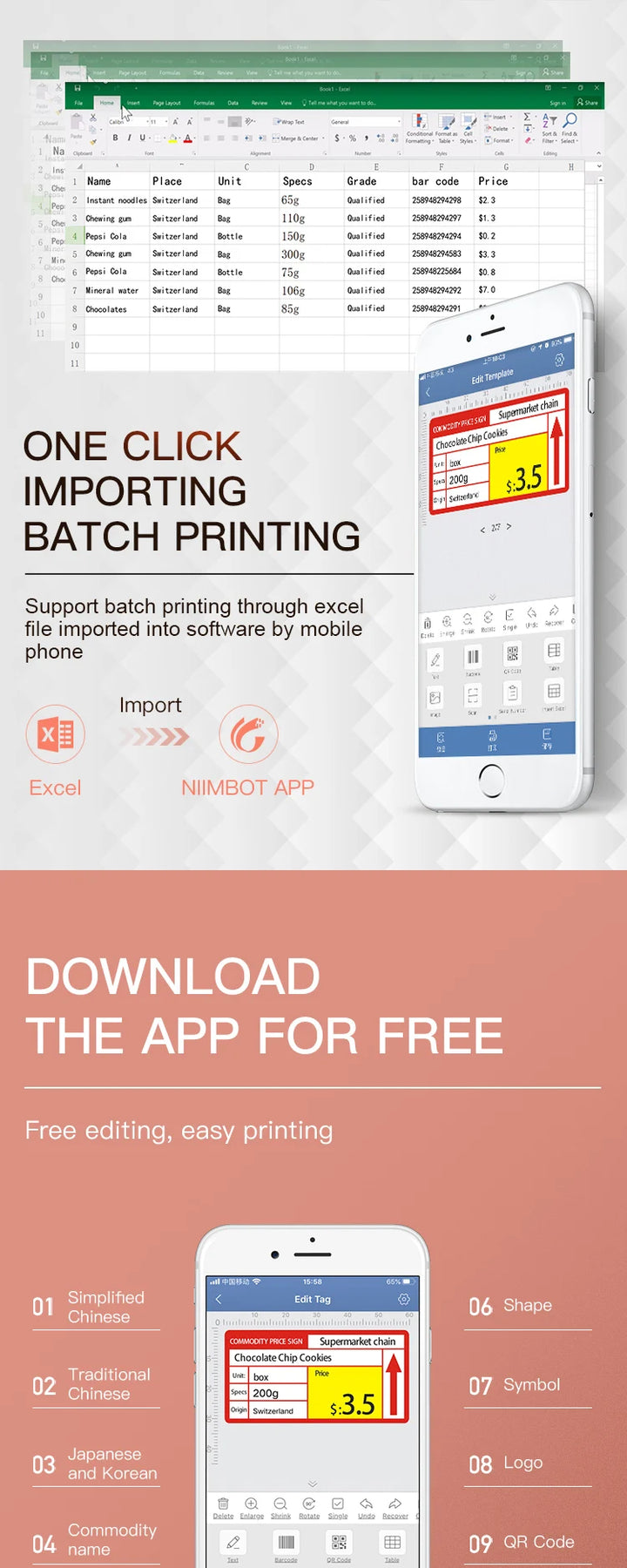 3.Supports all major label formats: price, date, size, weight, name, and so on.