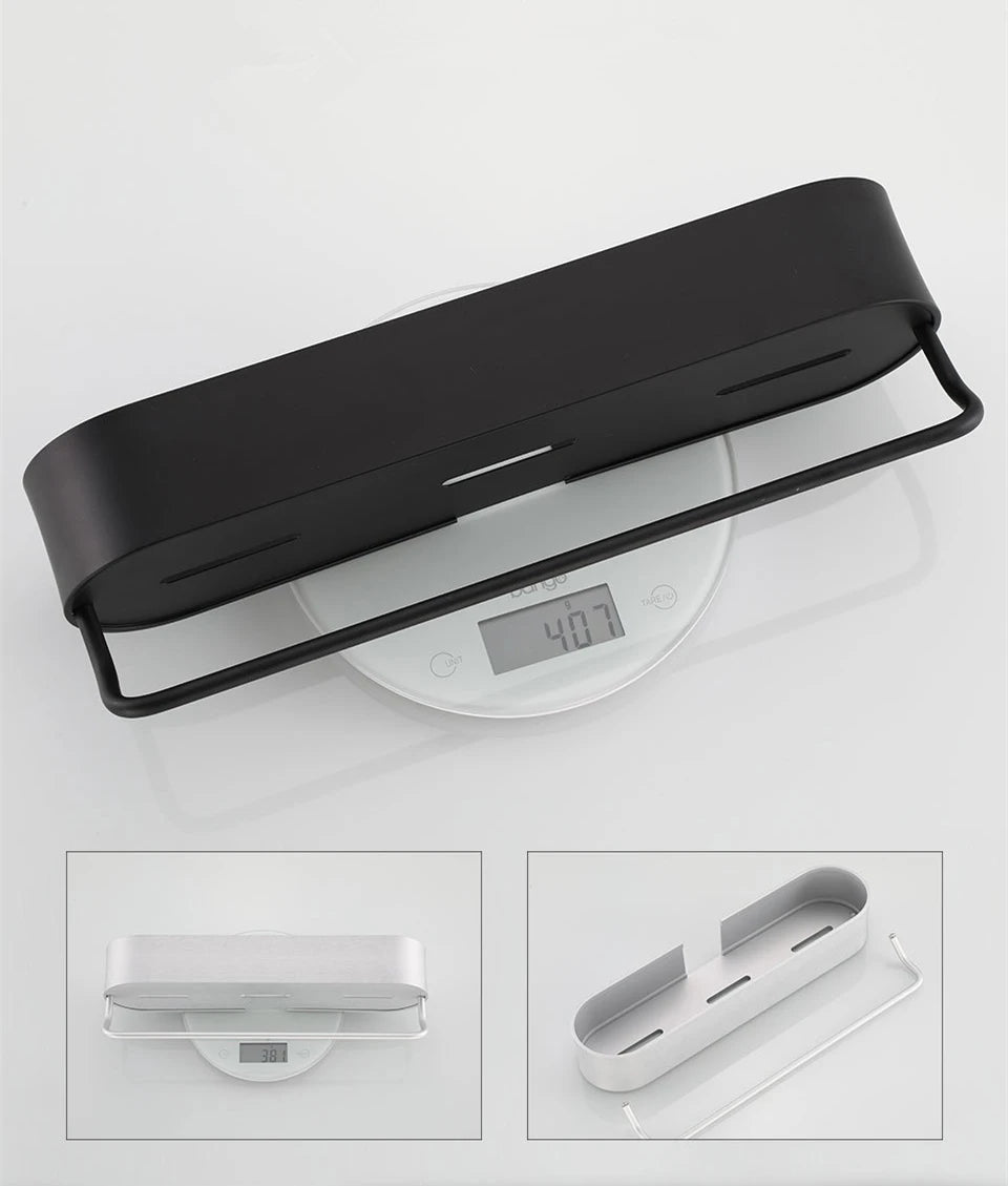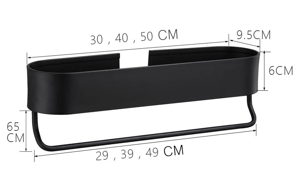 Black / Matte Bathroom Shelf Shower Basket Kitchen Storage Rack With Towel Bar Cosmetics Wall Shelves Bathroom Accessories