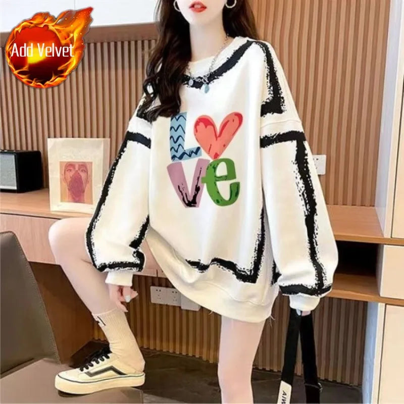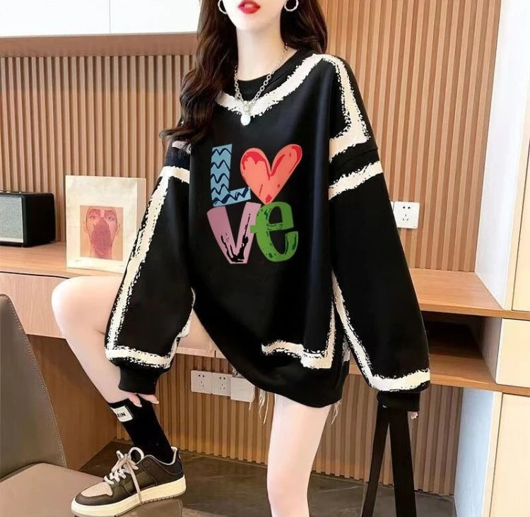 Women's Sweatshirts Letter Printing 2025 Trend Essential Aesthetic Cotton Text Dropshiping Basic Emo Doodles Female Pullover Top