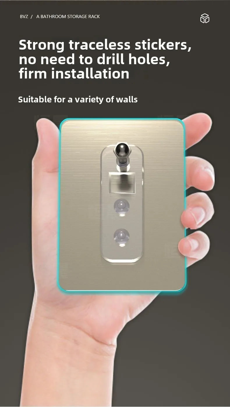 1. No-drill Installation, Hassle-free Setup: This bathroom wall-mounted shelf features a revolutionary no-drill design. With its strong adhesive pads or suction cups, it can be effortlessly attached to the wall in just minutes. Say goodbye to the mess and hassle of drilling holes, perfect for renters or those who simply don't want to damage their bathroom walls.