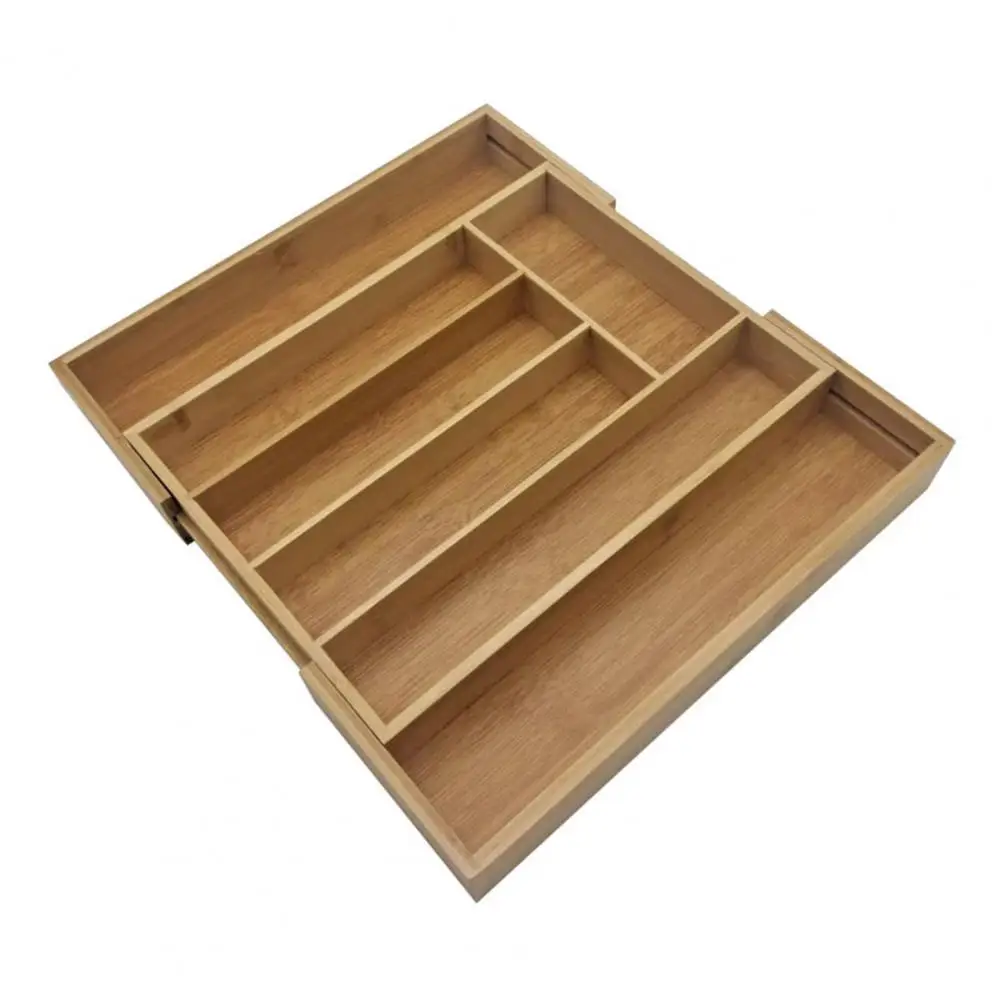 Bamboo Drawer Organizer Expandable 5-7 Compartments Adjustable Width Cutlery Tray Kitchen Utensils Jewelry Storage Tray