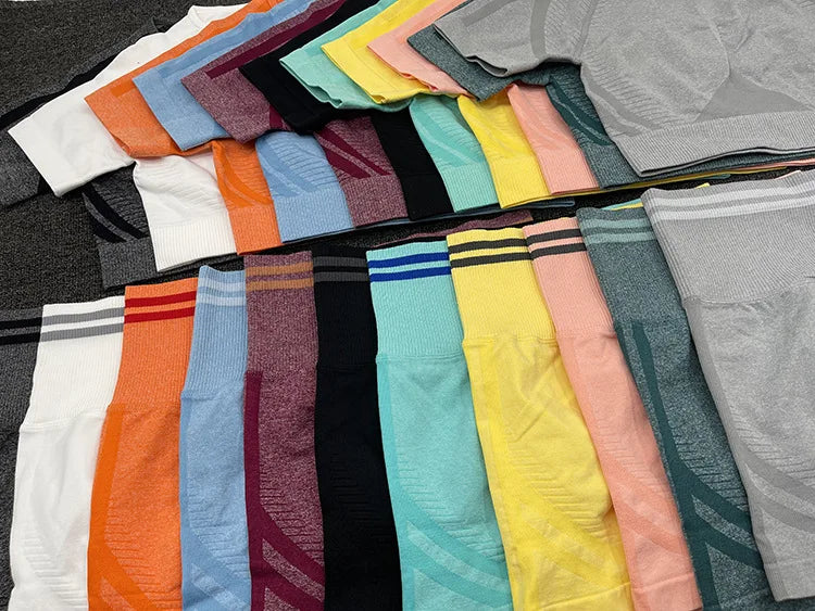 Seamless Yoga Sets Sports Fitness Peach Hip-lifting Shorts Beauty Back Short-Sleeved Suits Workout Gym Leggings Set for Women