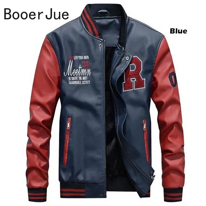 Bomber Jacket Men Baseball Motorcycle Embroidered Leather Pu Coats Slim Fit College Fleece Luxury Pilot Jackets Top Winter Coat