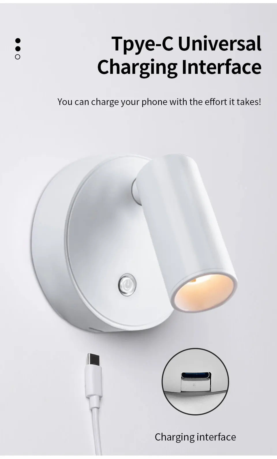 • USB Rechargeable :This wall lamp comes with USB charging capabilities, making it a practical choice for charging your devices while providing light.