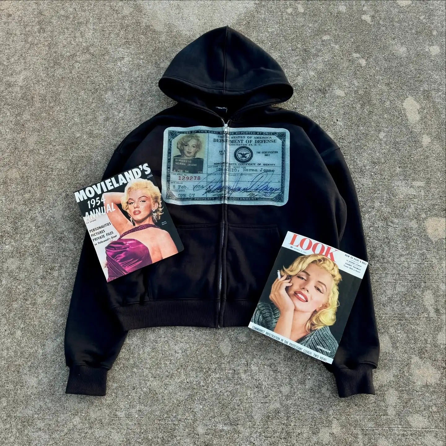 Tatiana Haven Y2K Retro Zip-Up Hoodie – Unisex Streetwear Long Sleeve Hooded Sweatshirt