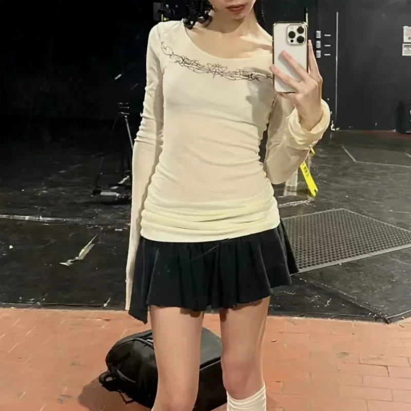 Y2k Gothic Print T-shirt Trashy 2000s Style Long Sleeve Tops Vintage Harajuku Streetwear American Retro T-shirts