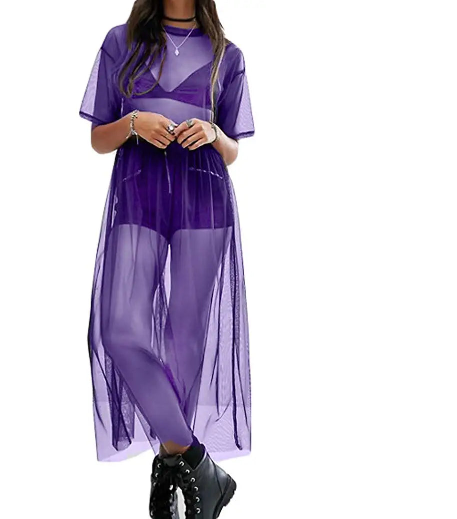 Summer Sexy Mesh Sheer Dress Women See-through Cover Up Top T Shirt Fashion Transparent Short Sleeve Casual Beach Bikini