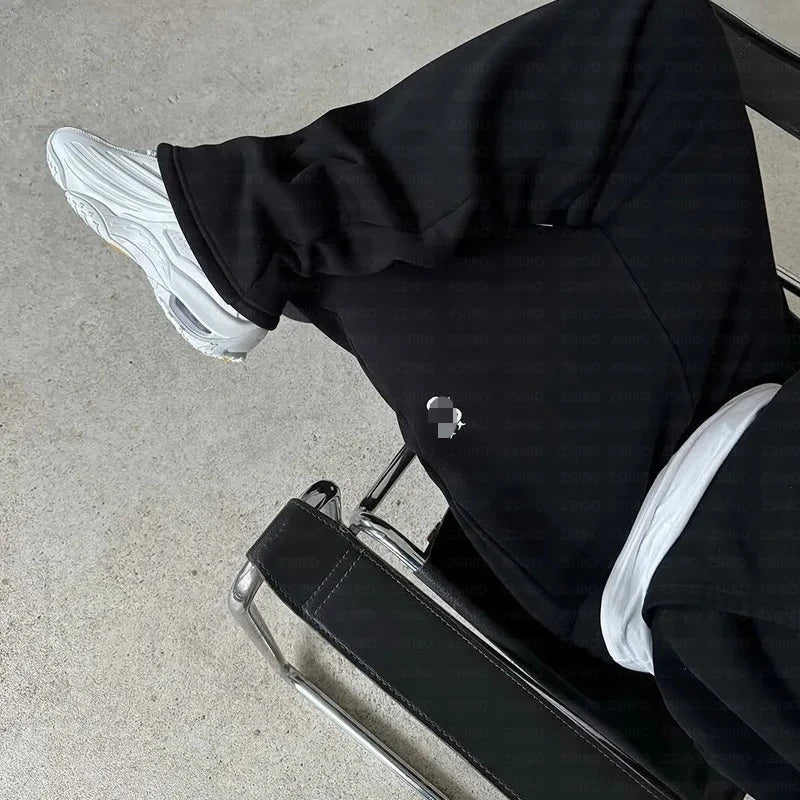 Y2k Retro Loose Straight Pants Men Tracksuit Pants Personalized Pant Leg Zipper Embroidery Design Hip Hop Harajuku Casual Pants
