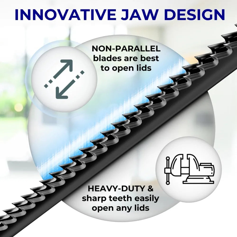 1. Sharp Bite - Opening even the roughest lids is now effortless. Two rows of razor-sharp high-carbon steel teeth bite down hard into the lid to keep it firmly in place while you twist the jar free. Each blade is covered with a special rust-free coating to make it last for years.