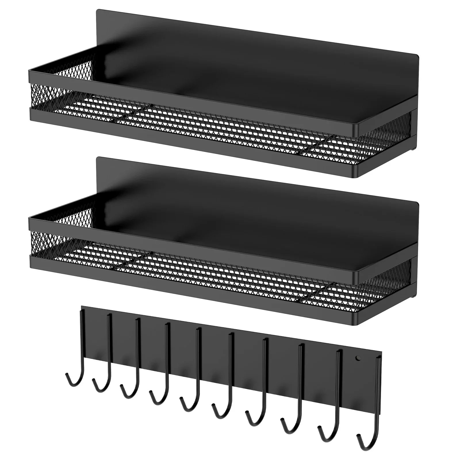 Practical Combination: The set includes two storage baskets and a row of hooks, meeting diverse storage needs for utensils, toiletries, or small gadgets