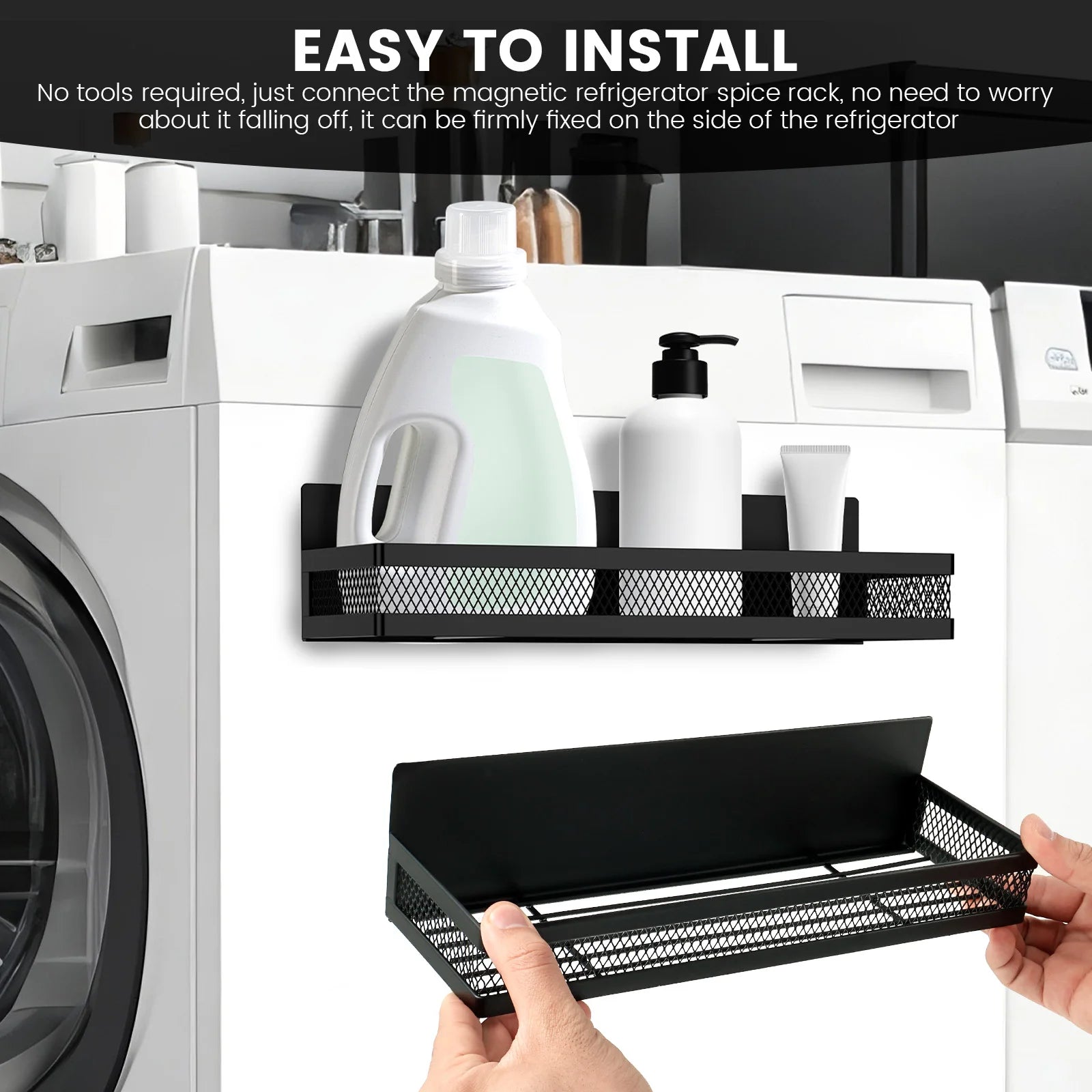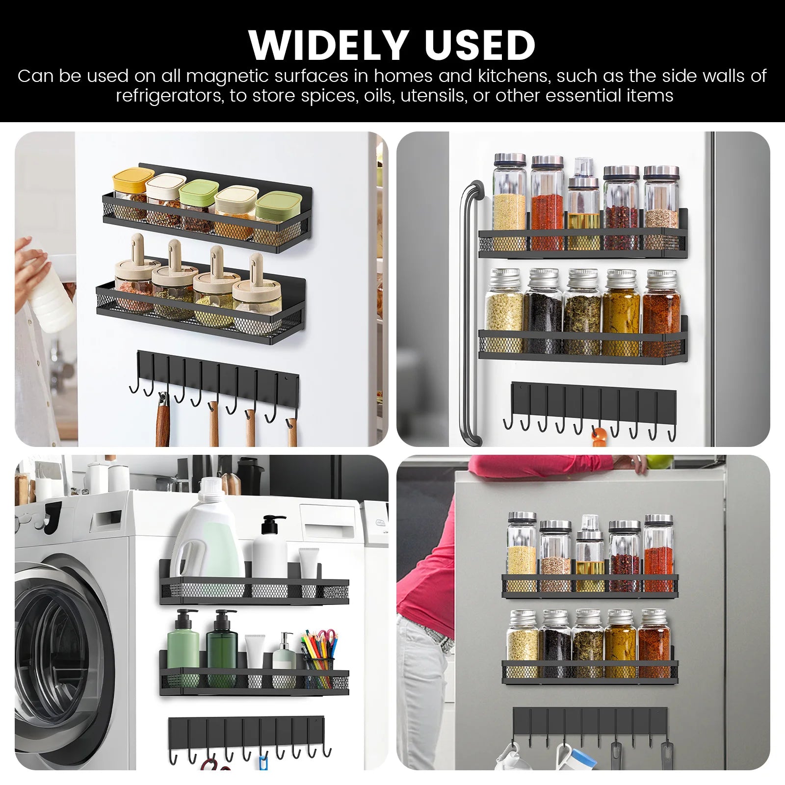 Easy Installation: With strong magnetic fixation, these racks can be firmly attached to the side of refrigerators, ovens, or other metal surfaces without tools