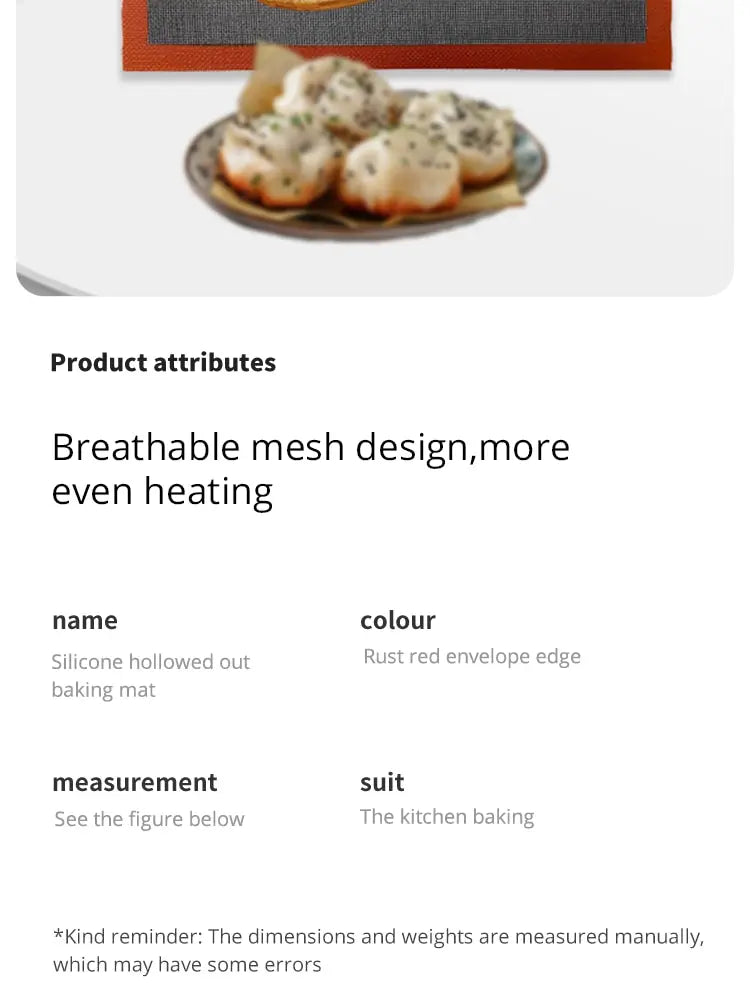 Silicone Grill Mat 30X40cm Baking Tray Breathable BBQ Cookie Bread Mat Oven Microwave High Temperature Baking Kitchen Tools