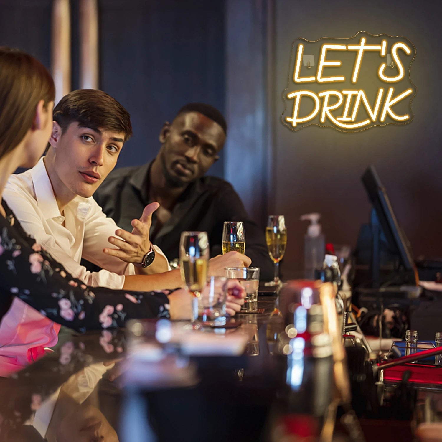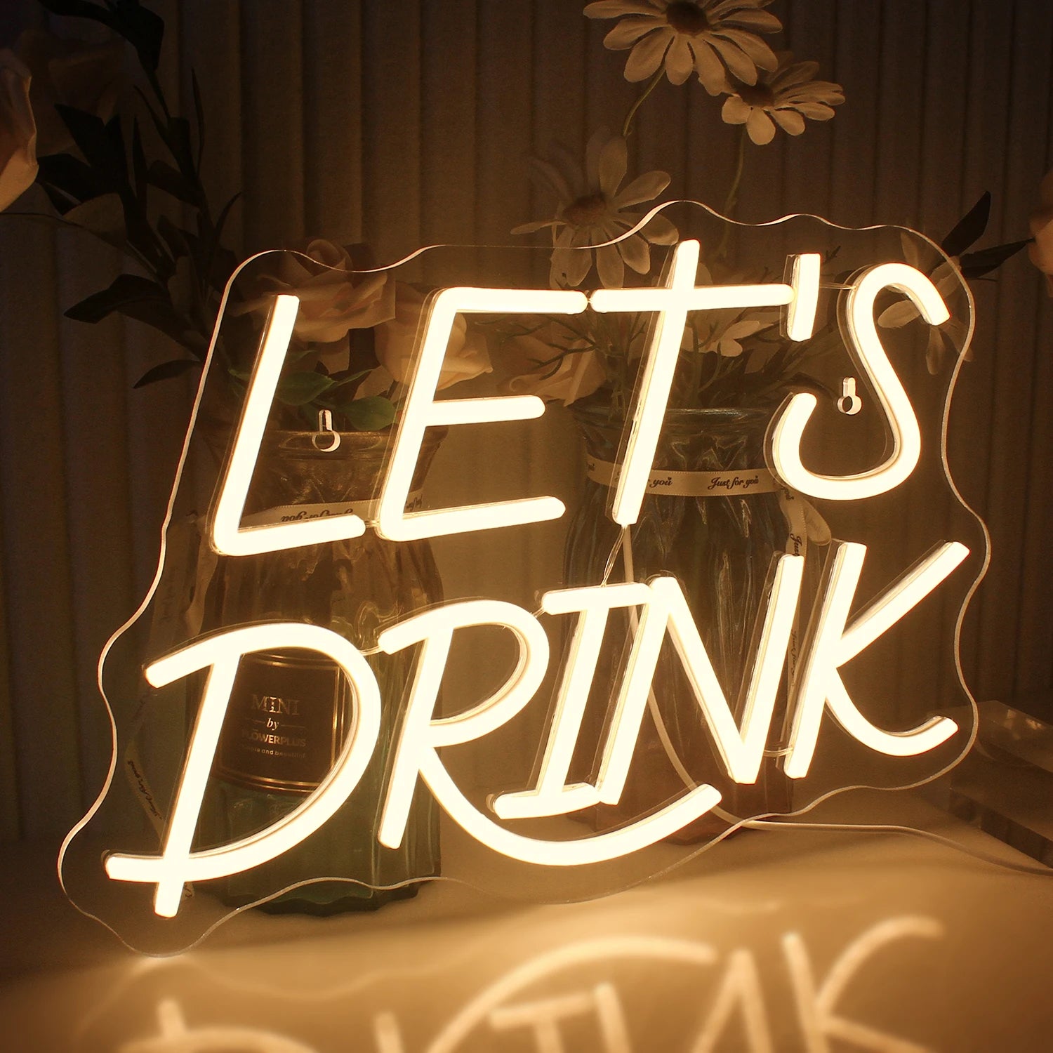 Let's Drink Neon Sign USB Power LED Lights Art Letter Room Decoration For Home Bars Birthday Party Bar Pub Man Cave