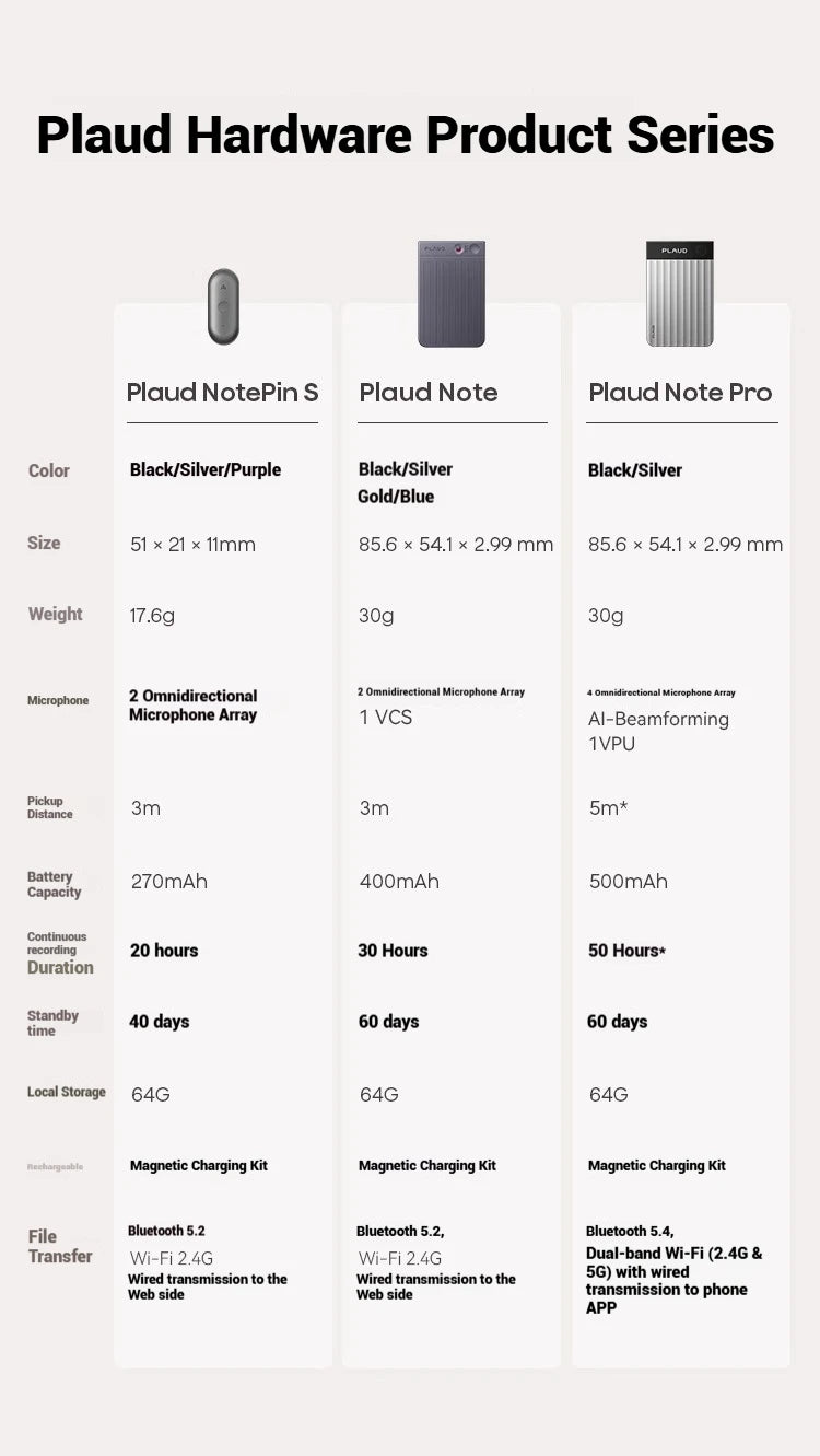 New Plaud Notepin S Wearable AI Voice Recorder, AI Notetaker, Smart Transcription & Summarization, with Wristband & lapel clip