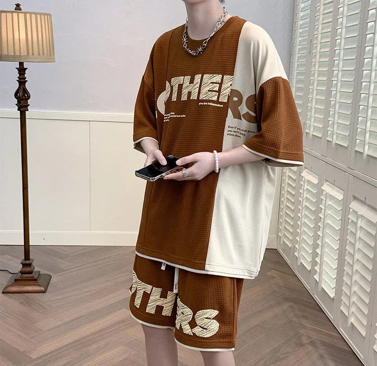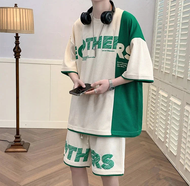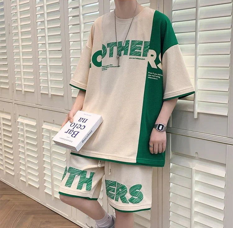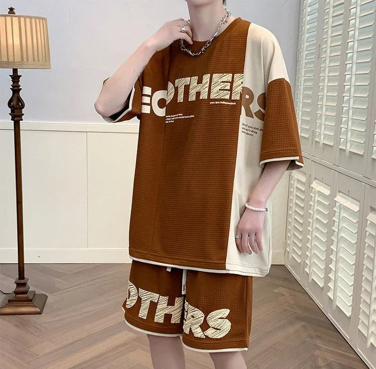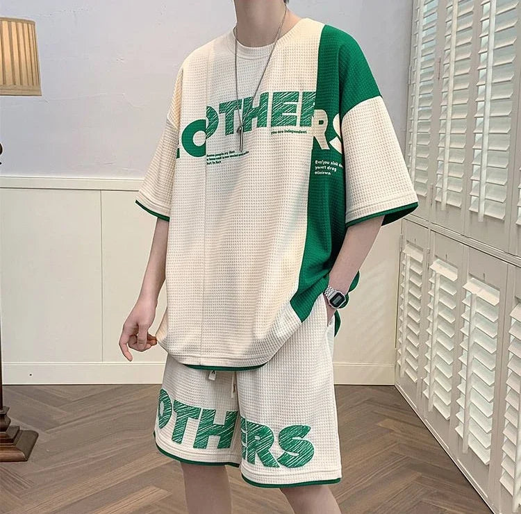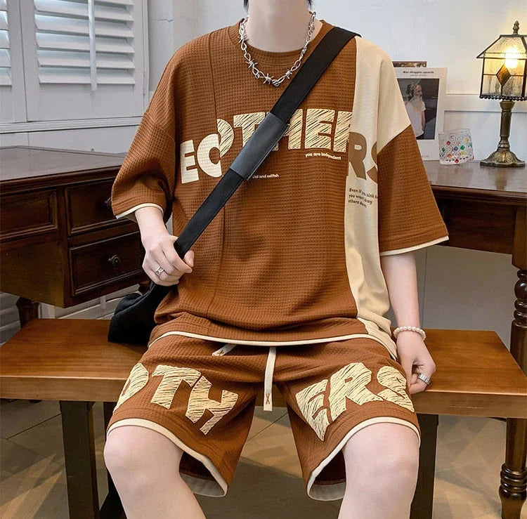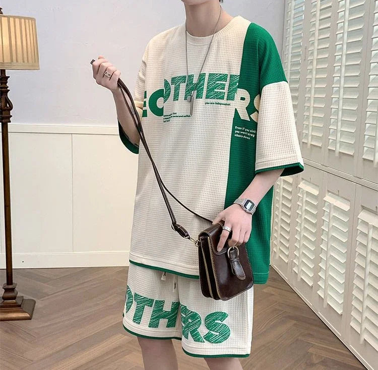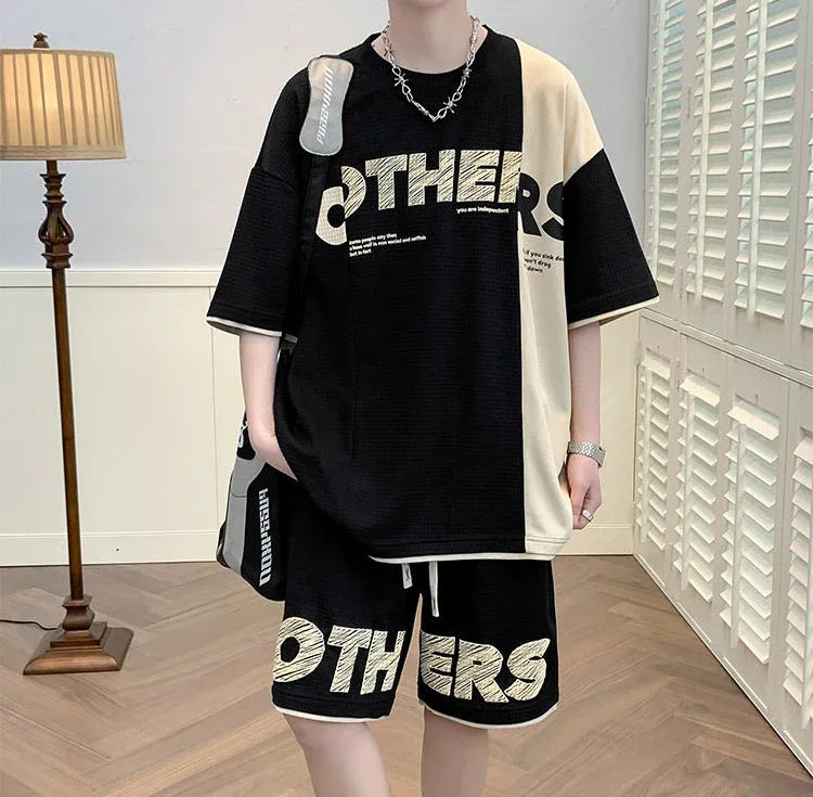 Men’s Alphabet Sportswear Set – Casual Jogging Tracksuit with T-Shirt and Shorts