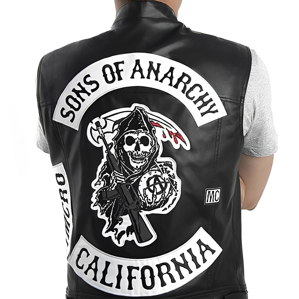 Men Motorcycle Spring Jackets SOA Punk Black Motorbike Gilet Sons of Anarchy Leather Moto Jacket Vest