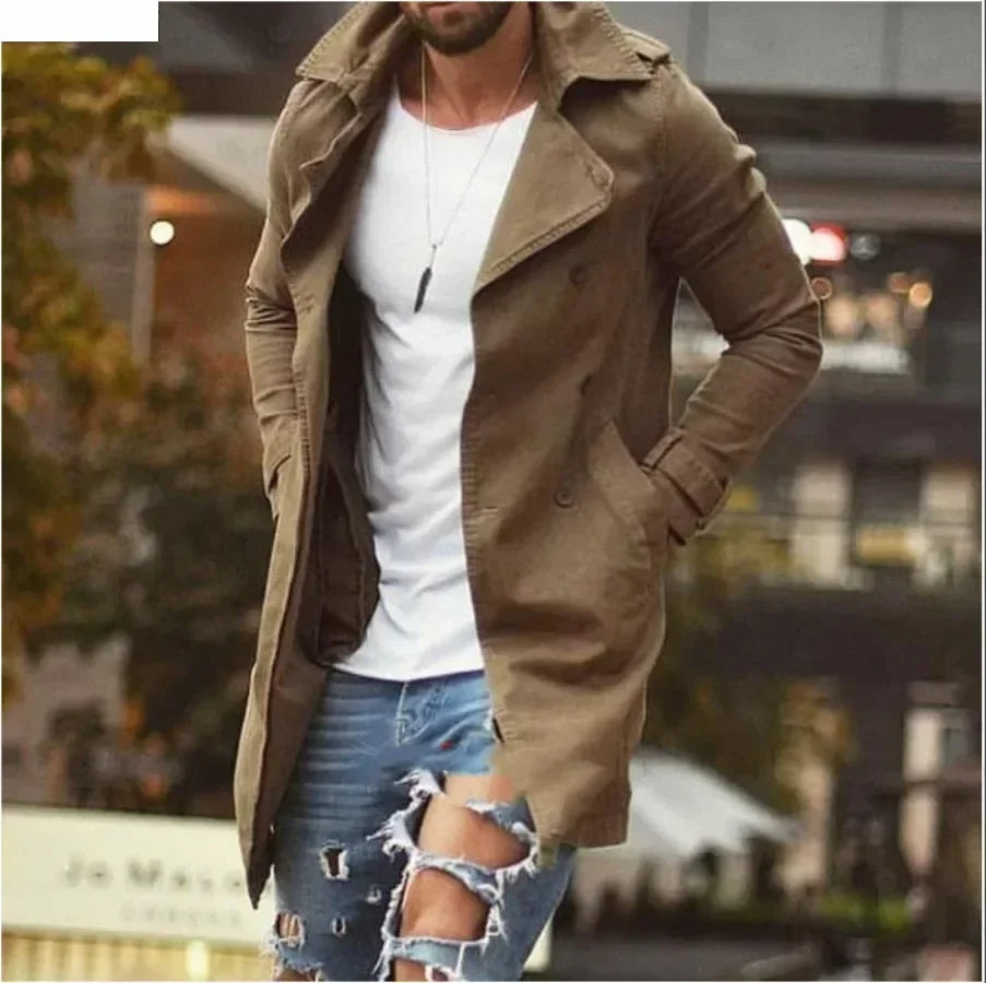 2025 Men's Lapel Trench Coat Autumn Winter Warm Overcoat Men Fashion Casual Long Sleeve Jacket Slim Button Jacket Coats for Men