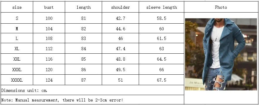 Men's Lapel Trench Coat Autumn Winter Warm Overcoat Men Fashion Casual Long Sleeve Jacket Slim Button Jacket Coats for Men