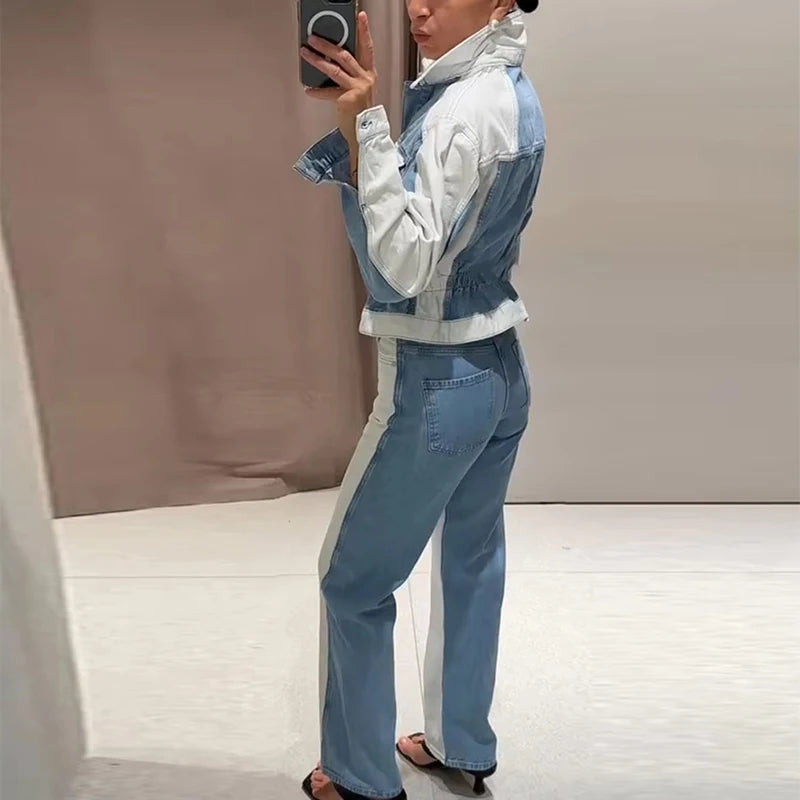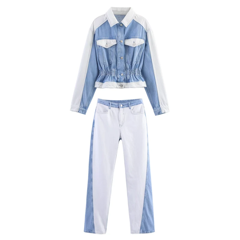 MUJER Denim Bomber Jackets for Women Varsity Cropped Jacket Woman Streetwear Outerwears Women's Coats Long Sleeve Jacket Set