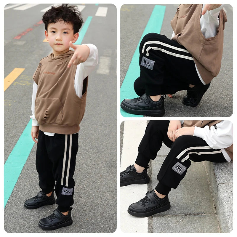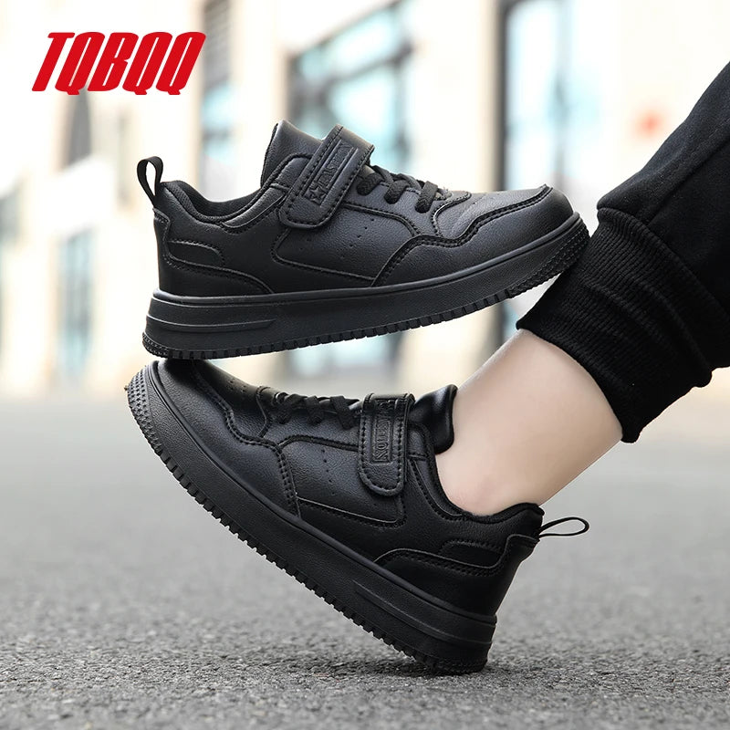 Kids' Classic Black Skate Shoes Boy Lightweight Breathable Casual Sneakers with Cushioned Insole Non-Slip Design for School