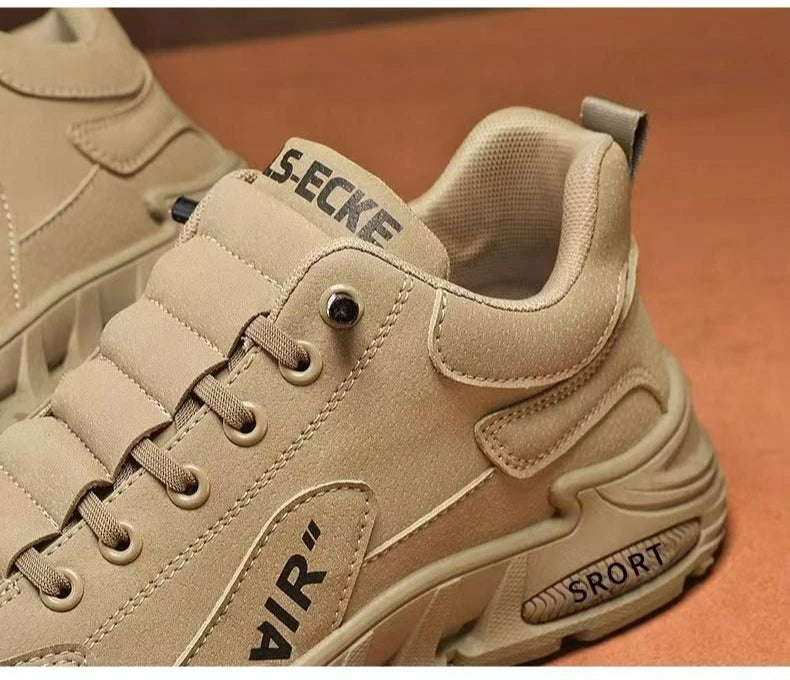 Men Chunky Sports Sneakers Spring Fashion Slip-on Men Casual Shoes Leather Waterproof Work Shoes for Men Anti-Slip Platform Shoe