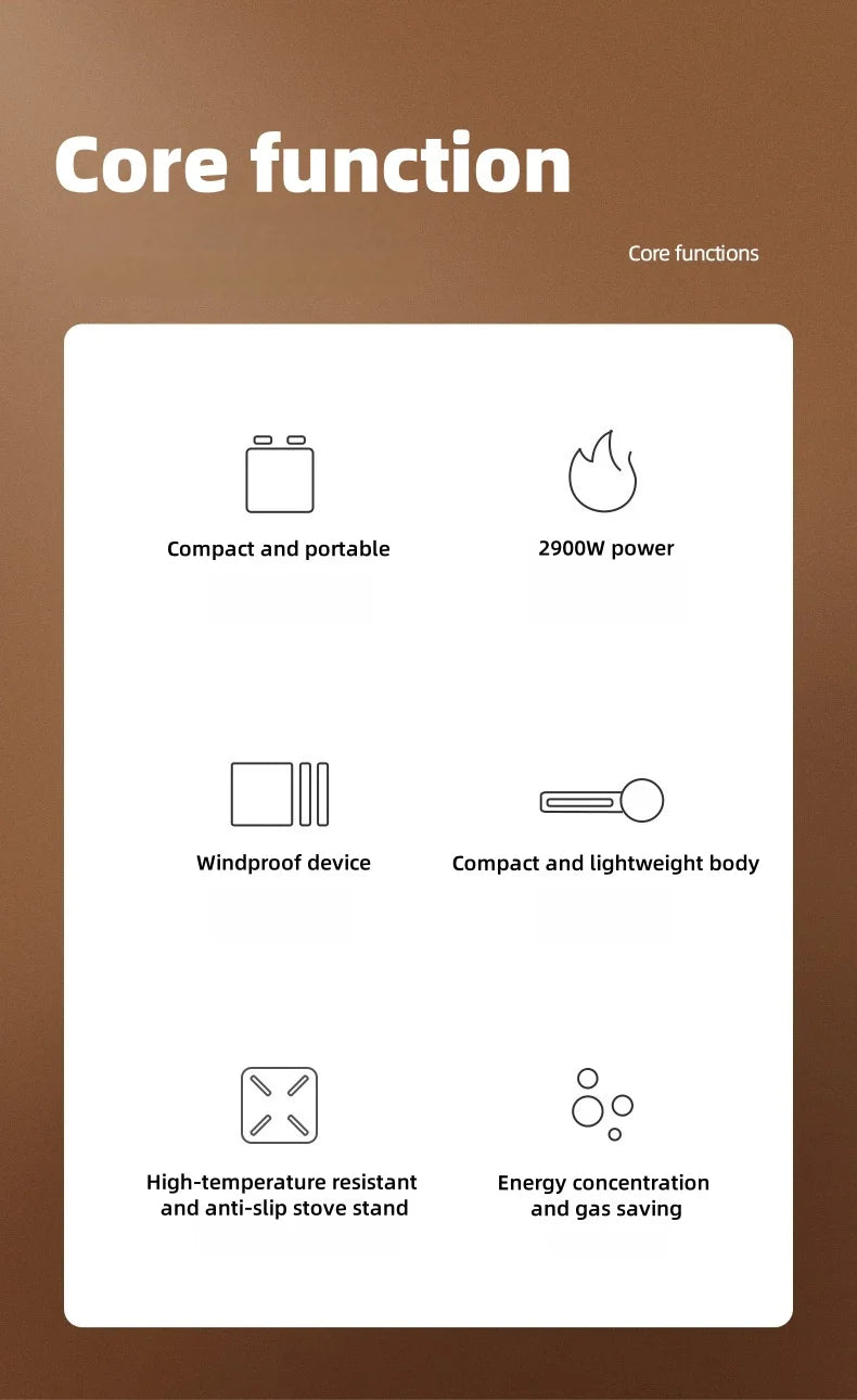 • Wide Compatibility & Multi-Functionality ~ Compatible with standard butane canisters for consistent fuel supply ~ Supports a range of outdoor cookware for gourmet outdoor meals, quick snacks, or hot beverages in remote locations.